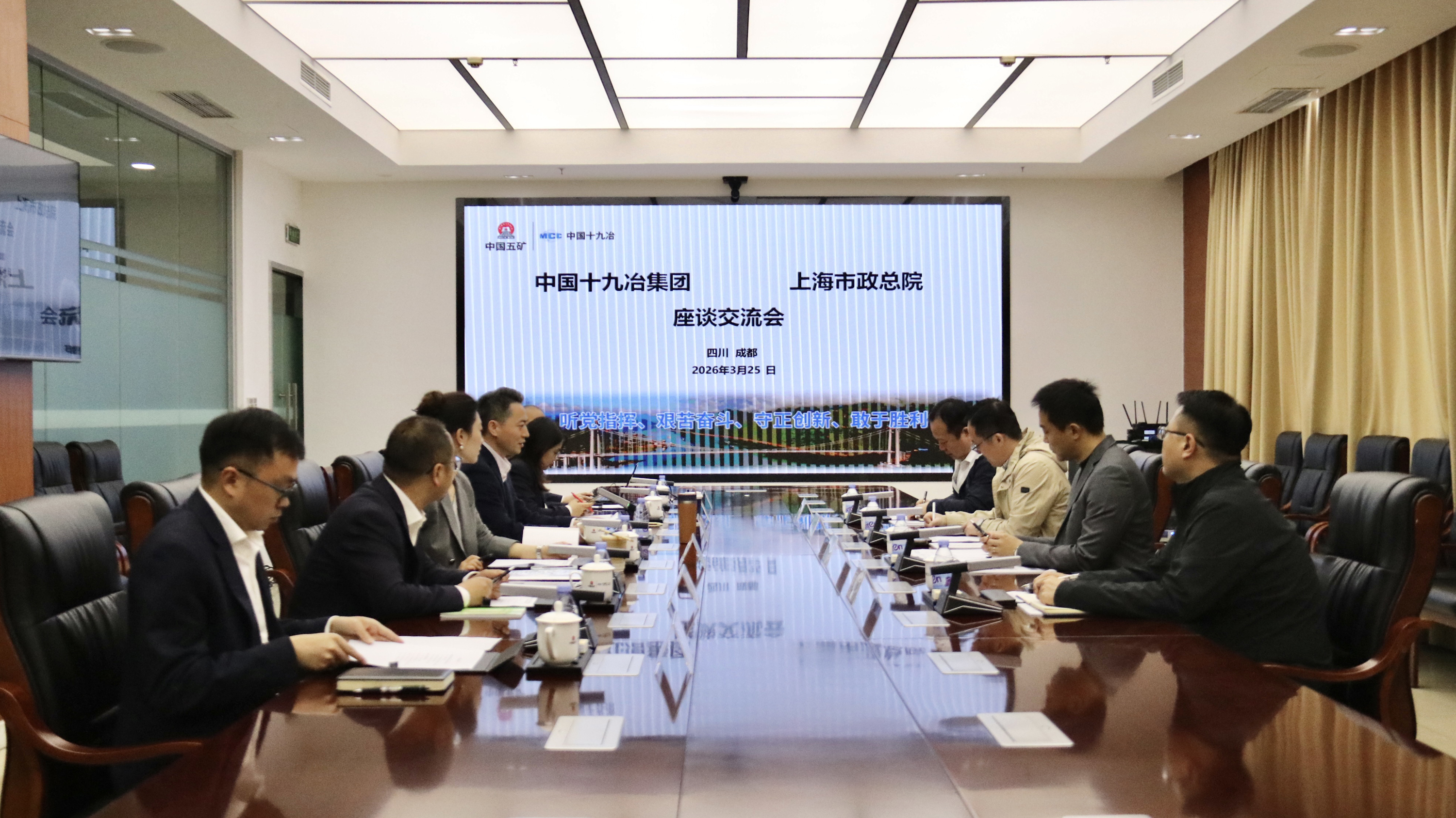 上海市政总院道桥院副院长沈祺,国际业务部、西南分院成都分公司相关人员;中国十九冶市场管理部、海外事业部、路桥公司等相关负责人参加座谈会。