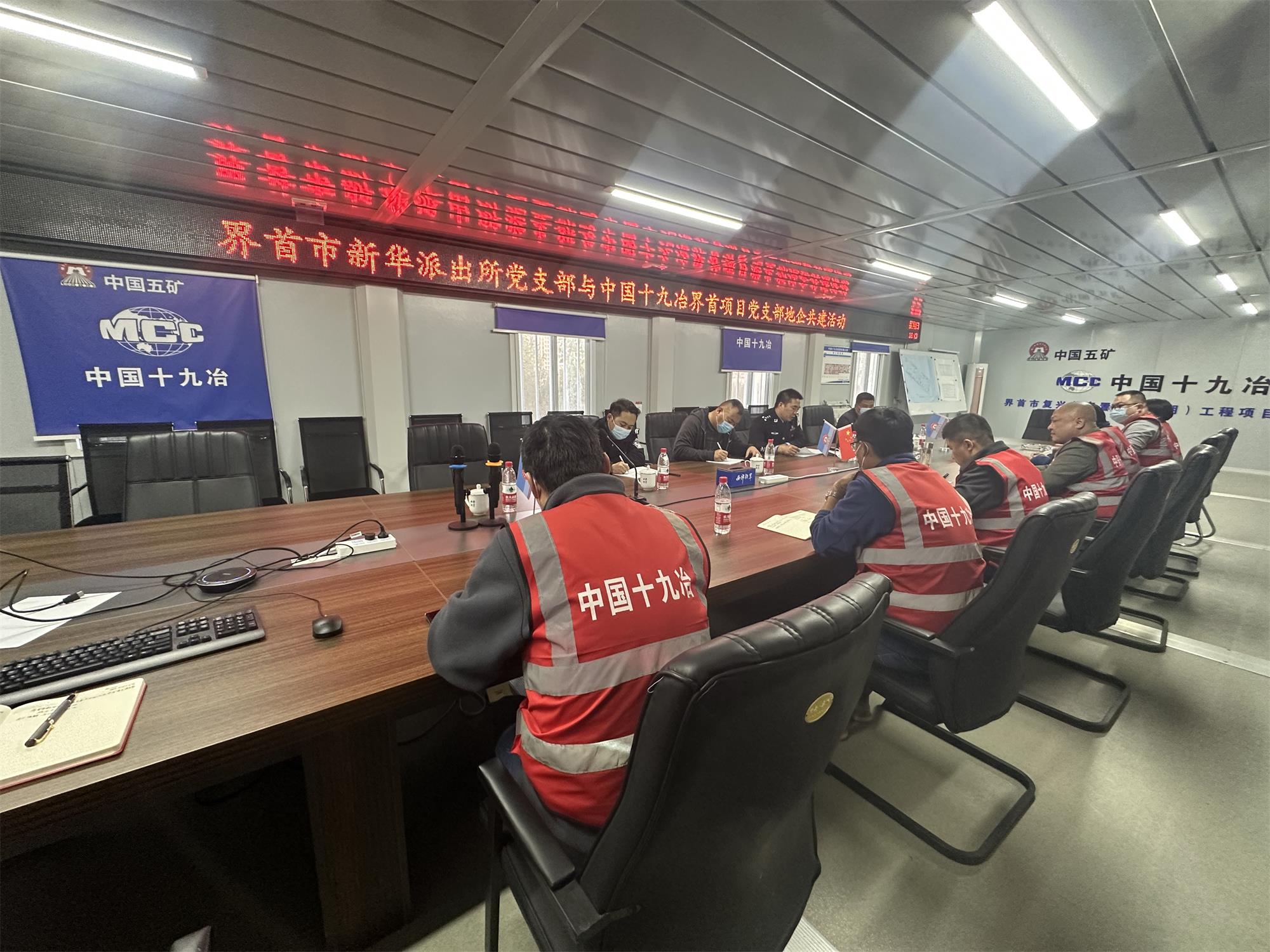 双方支部党员首先在项目现场进行观摩,界首市新华派出所同志对现场安全文明施工细节表示肯定。在随后的座谈会上,界首项目党支部书记首先领学了党的二十大报告,详细宣贯了报告中有关推进国家安全体系和能力现代化,坚决维护国家安全和社会稳定的内容。新华派出所党支部书记领学了习近平总书记关于总体国家安全观重要论述,讲解了当地安全管理条例与近几年的生产安全事故,为项目部生产安全发展提供了具有针对性的意见建议。活动最后,双方党支部就未来支部共建实现长期互动达成了共识,纷纷表示要以此次联建共建活动为契机,进一步加强支部间的党建和业务工作的互联互通。
