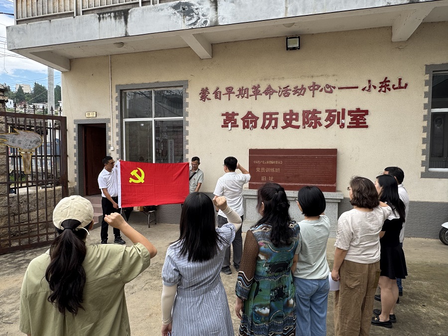 活动当天,双方党员一起前往蒙自小东山,参观小东山早期革命历史陈列室,了解小东山暴动事件始末和历史意义。在革命历史陈列室,大家对第一位蒙自籍共产党员杜涛、中共云南省临委的成立、中国共产党云南省临时委员会党员训练班的成立、中国共产党在云南组织的第一次武装斗争小东山暴动等蒙自早期革命活动的光辉历程进行回顾学习。最后,全体党员在陈列室前重温入党誓词。