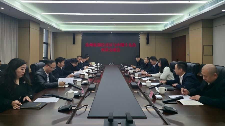 本网讯(通讯员 马骏)3月24日,中国十九冶与达州东部经开区举行工作会谈。达州东部经开区党工委副书记、管委会主任董代春,中国十九冶党委委员、副总经理白鑫参加座谈会。