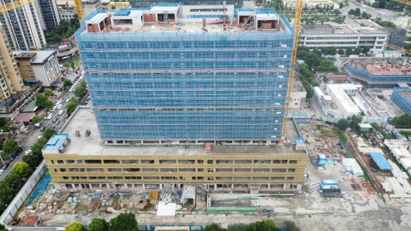 该项目位于崇州市永康东路崇州市人民医院内,主要由新建第二住院大楼、地下停车场、发热门诊、总平及其他工程组成。项目建成后,将新增床位380床,新增地下停车位679个,地上停车位118个,能够为辖区居民提供更加温馨舒适、方便快捷的医疗服务,有力提升崇州市卫生健康服务水平。建设过程中,项目部以打造优质工程为核心目标,全力以赴推进项目建设,面对时间紧、任务重、场地条件受限等客观因素,不断优化施工方案,实施分网格精细化管理,将现场划分为多个作业区,实现各工序无缝衔接与资源高效调配,确保了施工过程的有序推进,为主体结构的顺利验收提供了坚实保障。