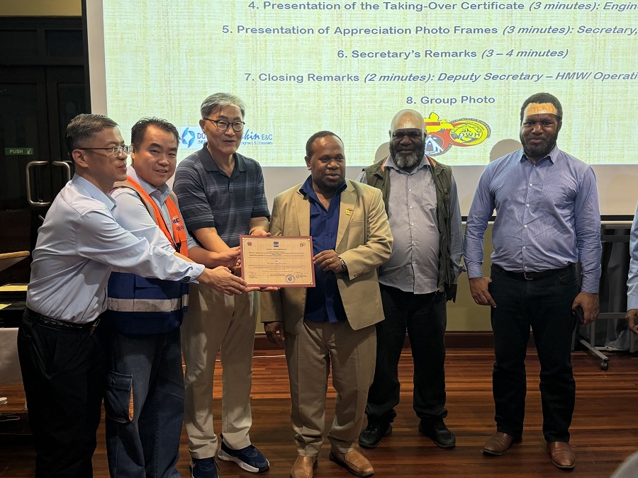 仪式现场,巴新公共工程与公路部联合亚洲开发银行(ADB)向中国十九冶颁发表彰证书。这是巴新同类交通基础设施项目中,首次由工程部与ADB联合向承包商颁发该类表彰,充分体现了业主和国际金融机构对中国十九冶履约能力和工程质量的高度认可。