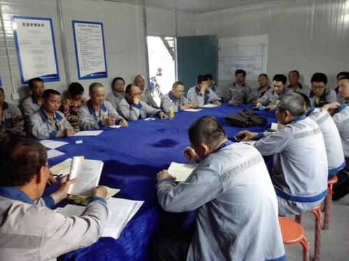 5月20日晚,日照地区党总支利用业余时间,组织召开全体党员大会,进一步探讨围绕项目施工推进“庸懒散浮拖”专项整治的方法和途径。会上,学习了《习近平总书记系列重要讲话读本》选段。与会人员表示,在工程项目中推进“庸懒散浮拖”整治,就是要积极面对项目施工管理过程中出现的问题,共担困难,共渡难关,共同铸就“西部铁军魂”。